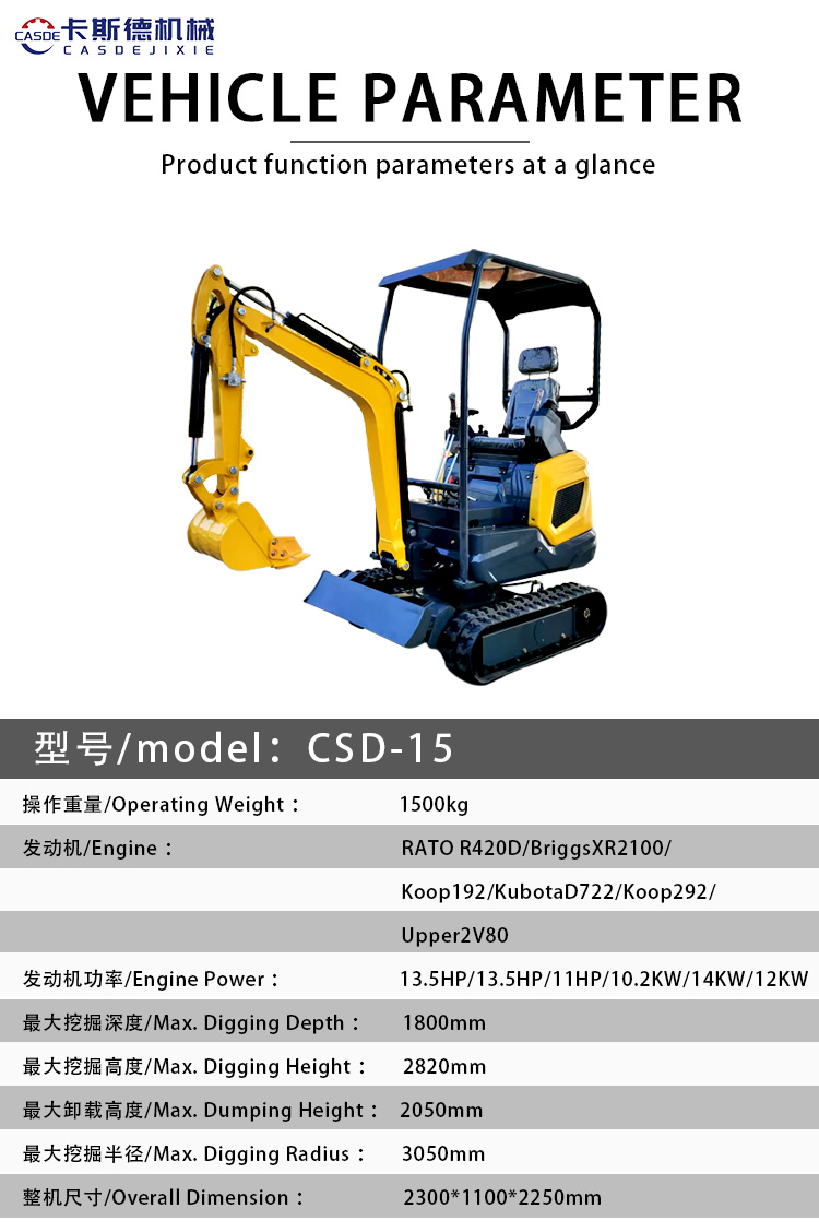 1.The 1.5-ton mini excavator is ideal for gardens, farms, orchards, and indoor projects. Fuel-efficient and highly productive.