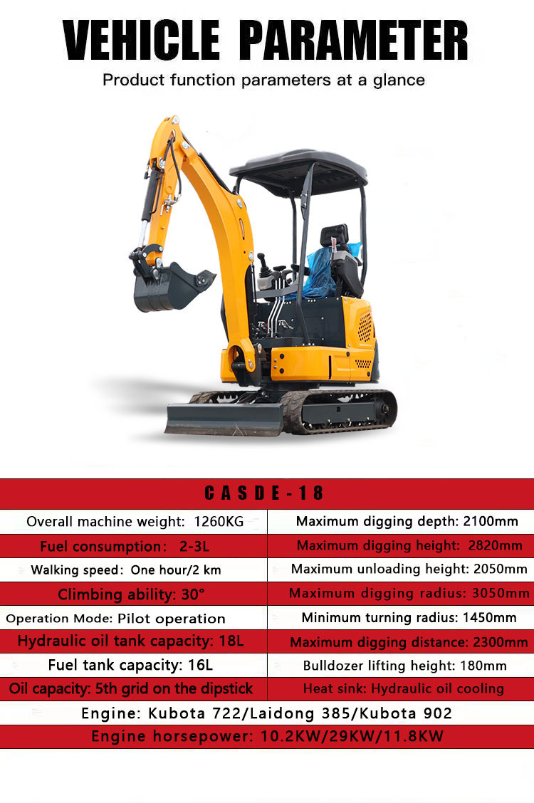 The 1.5 ton mini excavator (Model 15) is compact, powerful, and versatile, designed for agriculture, landscaping, municipal works, and construction in narrow spaces.