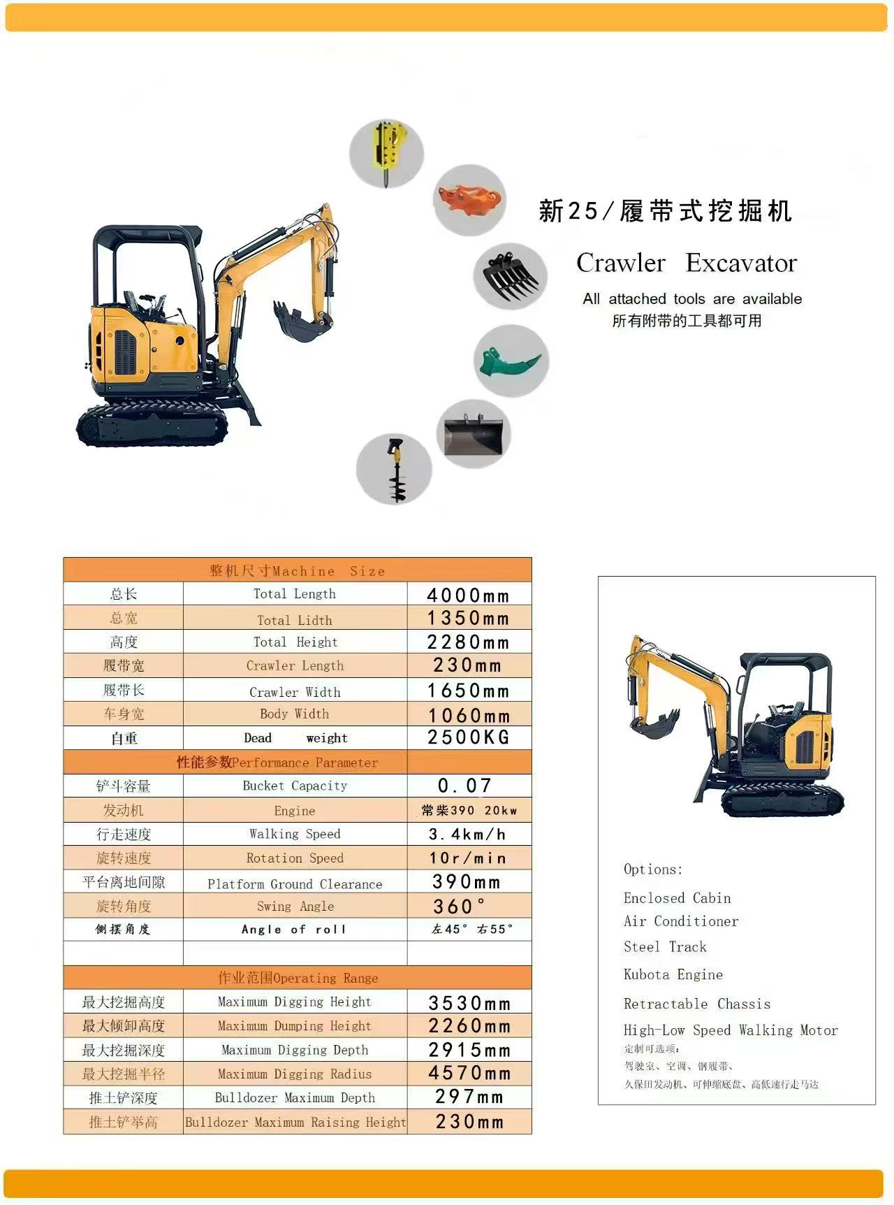 • Compact 2.5-ton design suitable for urban construction, landscaping, road maintenance, farm work, and small engineering projects.